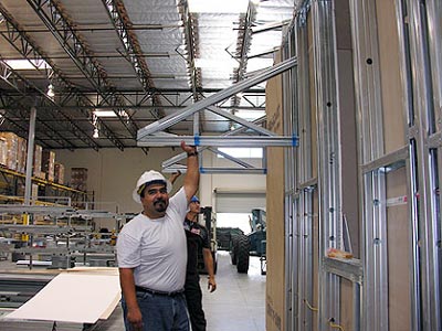 ![]() Somebody came up with the idea of adding a lean-to to the back of the cottage for storage. I didn't realize what they were doing, or I would have gotten the slope right, but eight minutes later, they had keyed it into the computer, the computer had done the truss design, fabricated the steel, they had assembled it, and were holding it up as you can see. |